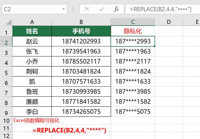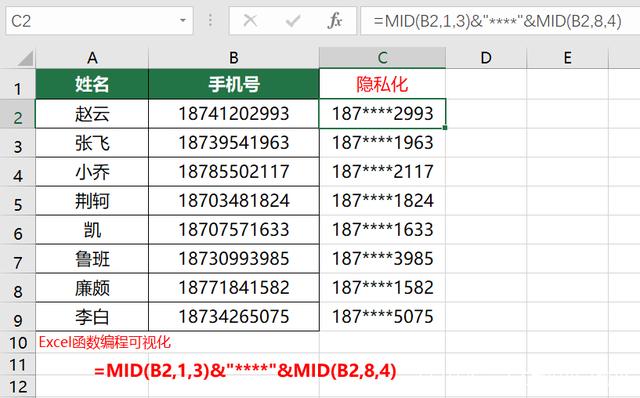 手机号隐藏中间四位,5种方法带你认识5个函数1个小技巧